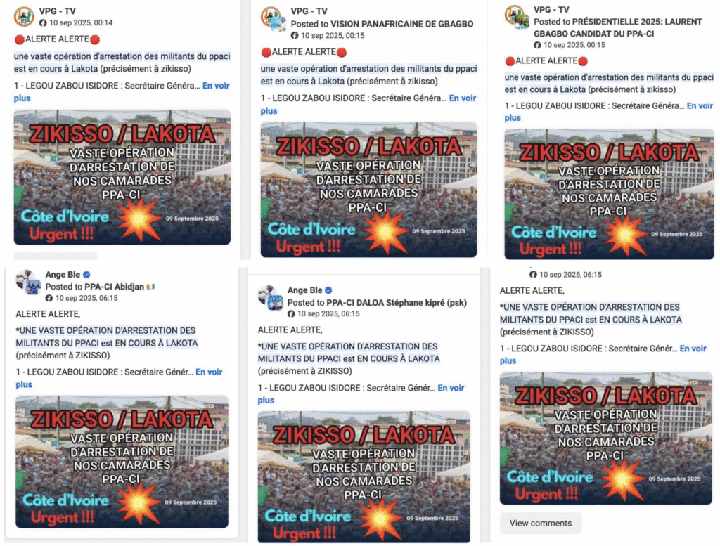 Le ton alarmiste du commentaire qui accompagne cette publication a renforcé cette perception : « ALERTE ALERTE, Les rebelles de Ouattara ne lâchent pas prise. Une vaste opération d’arrestation des militants du PPACI est en cours à Lakota, précisément à Zikisso ». Un commentaire qui désigne un ennemi politique, légitime une posture de victime et encourage une mobilisation, voire une confrontation.